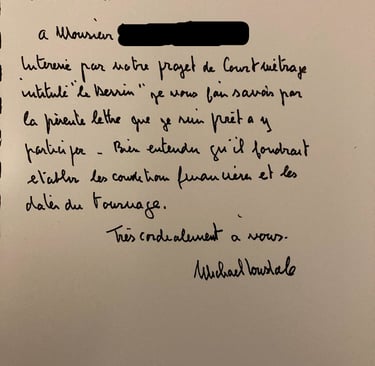 J’ai fini par comprendre que ce scénario, j’aurais pu le porter pendant des décennies contre vents et marées, comme l’a fait Caroline Bongrand pour son « Eiffel ». J’aurais pu rencontrer des producteurs, me battre et rebattre encore pour le faire exister. J’aurais même pu, d’une façon ou d’une autre, réaliser ce court-métrage moi-même. Quitte à me planter.